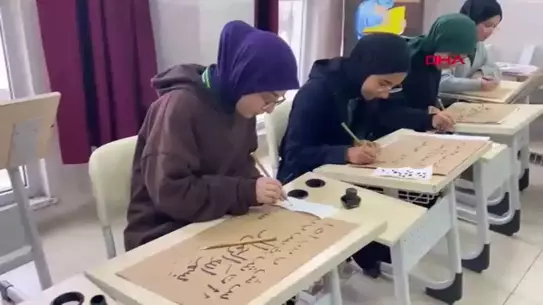 MARDİN'de Midyat Fen Lisesi'nde İlçe Milli Eğitim Müdürlüğü'nün de desteğiyle kurulan kaligrafi ve hat sanatı…